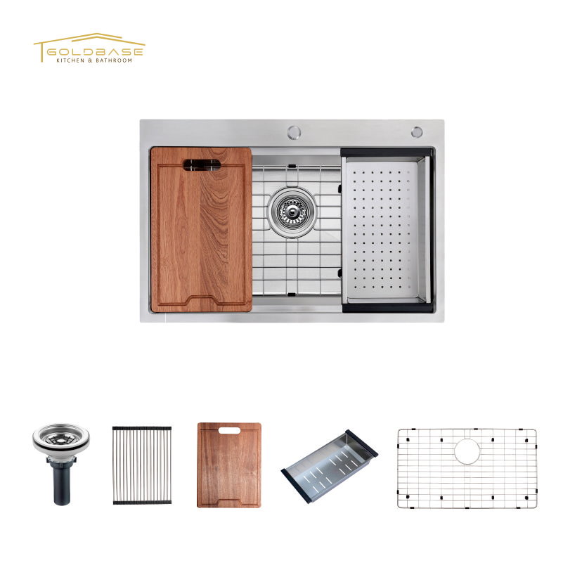 The sink is made of 304 stainless steel. The surface of the sink is hard and not easy to scratch. It has good corrosion resistance. The sink is shiny and not easy to change color.We have different plate thicknesses for you to choose.