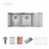 This 304 stainless steel multi-functional kitchen sink package includes colander, pull-down faucet, folding rack, rinse grid, soap dispenser, water purifier tap, chopping board, and drain system. All components work seamlessly for efficient food prep, cleaning, and organization, ideal for modern homes.