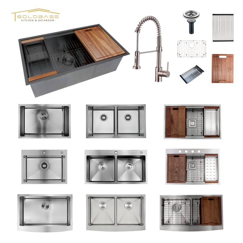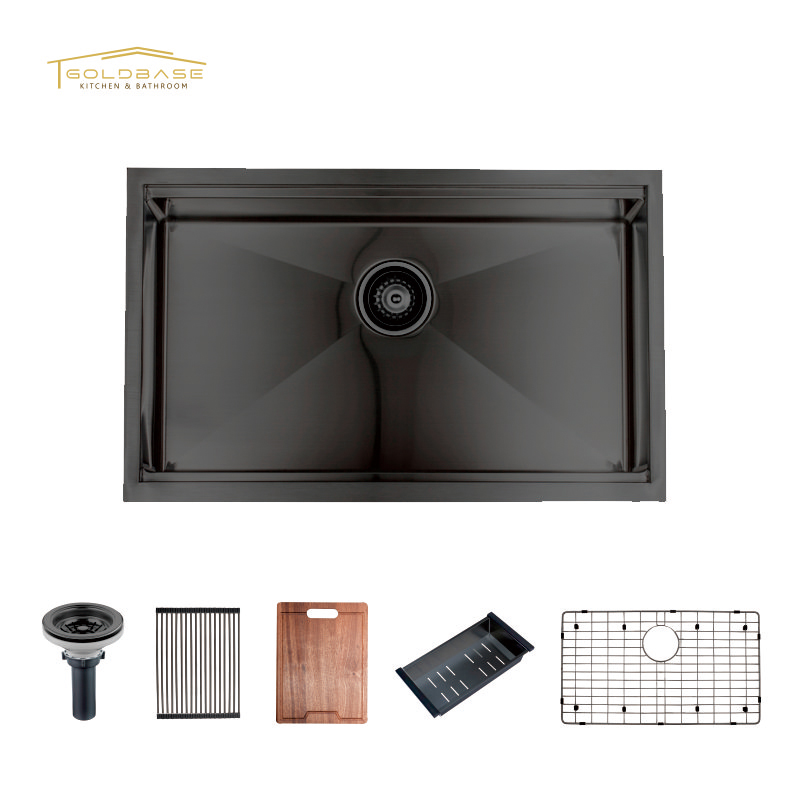The sink is made of 304 stainless steel. The surface of the sink is hard and not easy to scratch. It has good corrosion resistance. The sink is shiny and not easy to change color.We have different plate thicknesses for you to choose.