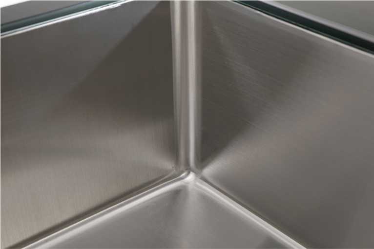 The sink is made of 304 stainless steel. The surface of the sink is hard and not easy to scratch. It has good corrosion resistance. The sink is shiny and not easy to change color.We have different plate thicknesses for you to choose.