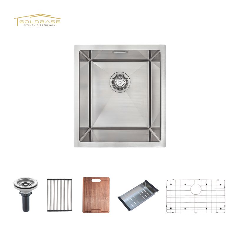 The sink is made of 304 stainless steel. The surface of the sink is hard and not easy to scratch. It has good corrosion resistance. The sink is shiny and not easy to change color.We have different plate thicknesses for you to choose.