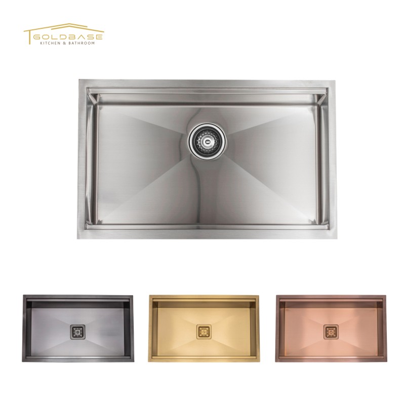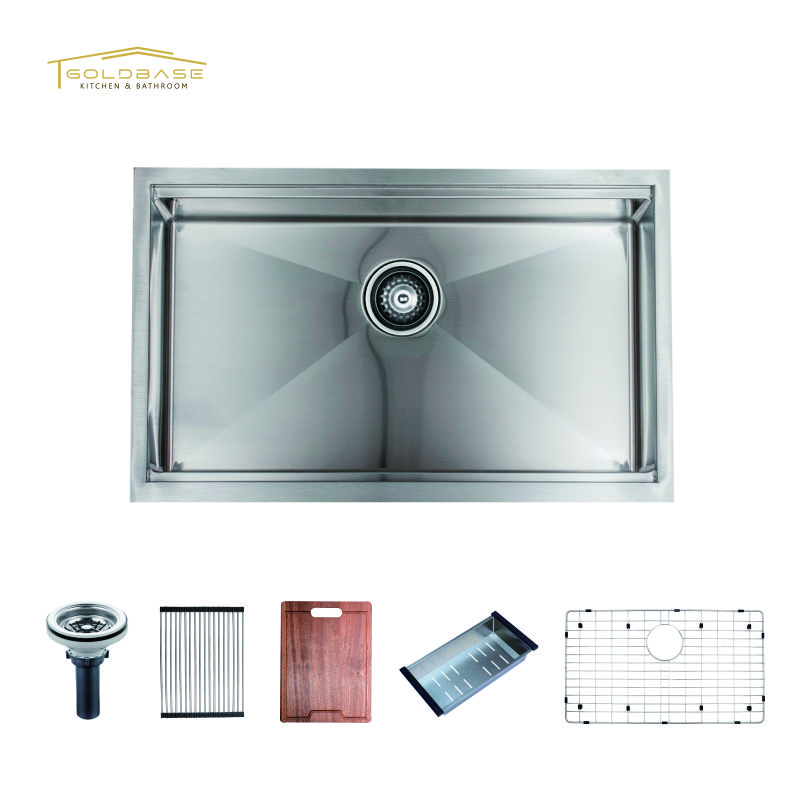 The sink is made of 304 stainless steel. The surface of the sink is hard and not easy to scratch. It has good corrosion resistance. The sink is shiny and not easy to change color.We have different plate thicknesses for you to choose.