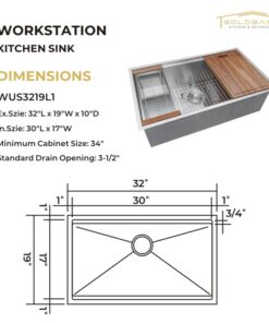 • SINK SIZE: 32x19x10″ (813x483x250mm)