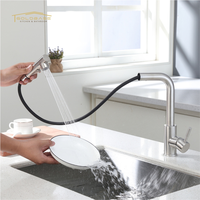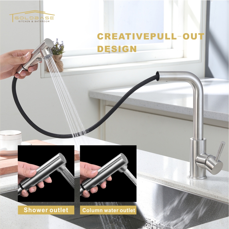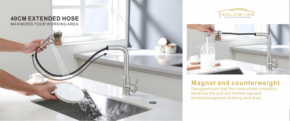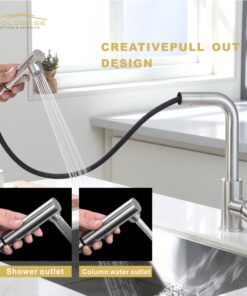 Pull-Out Capability: Select models include a pull-out function for comprehensive sink and countertop cleaning.