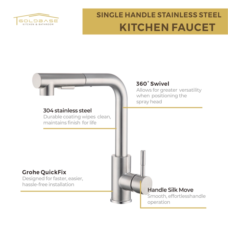 Pull-Down Design: Engineered with a pull-down spray head for enhanced maneuverability and sink access.